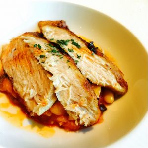 この日のメイン料理は「豚トロと豆のトマト煮」でした。